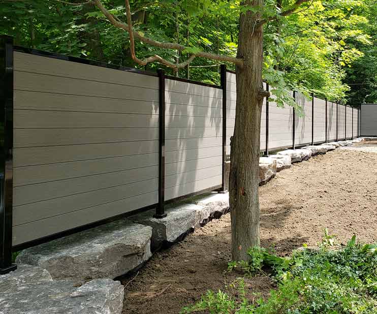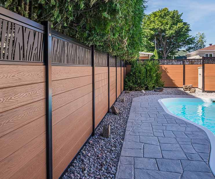SGC EzFence system utilizes the latest composite technology available on the market! We have found the perfect ratio between plastic and wood that equally prioritizes the longevity and appearance of our composite fence boards and aluminum frame structure.