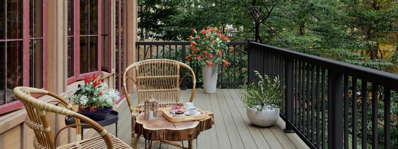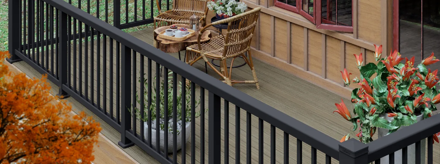 The textured aluminium handrail is offered in five colours, including Black, Sandy Beach, Moon Grey, Light Grey, and Natural Dark. Each of these colours can be matched to the aesthetic of your outdoor space. In addition, it has a wood texture to complement the composite decking you have.