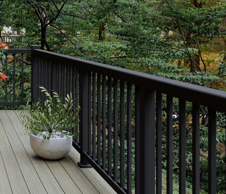 Our deck railing is made from aluminium and Aluminum railing Textured handrail comes in a variety of colours and is textured for an improved esthetic.