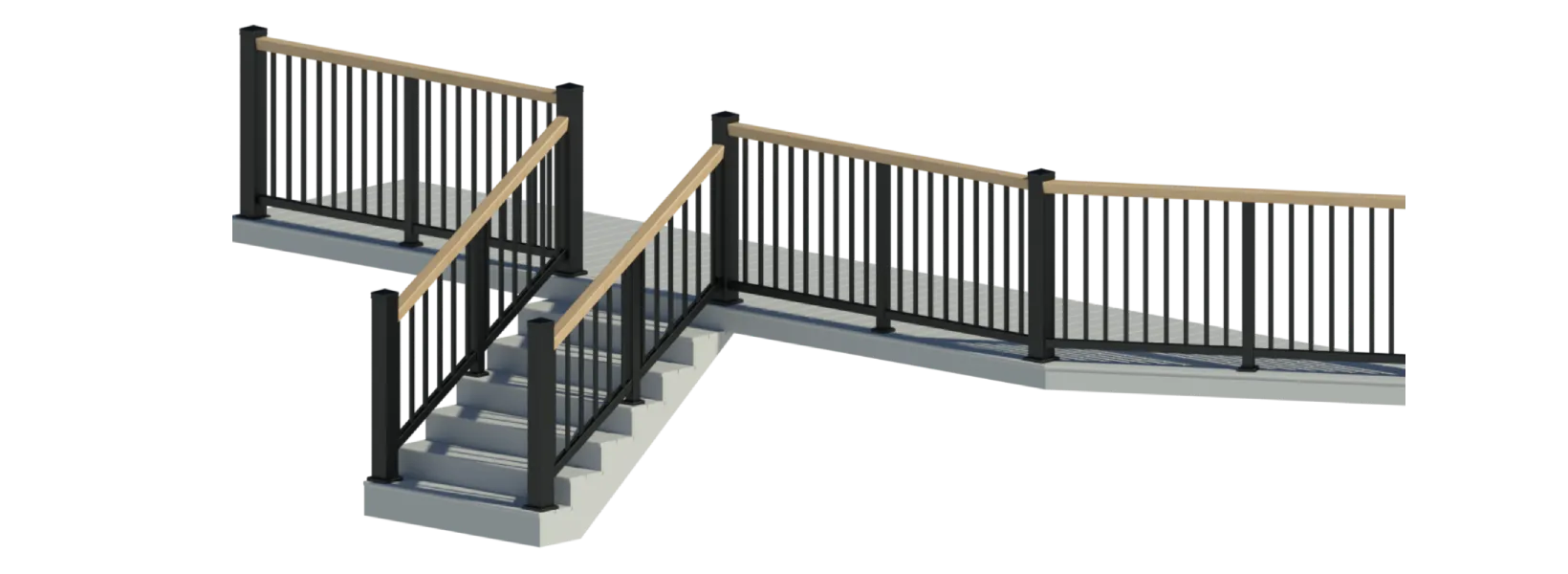 Our aluminium railings are perfect for use as exterior railings in ontario and all canada because they meet local building codes and construction standards. In addition, our aluminium railing offers great flexibility in terms of possible stair angles, making them suitable for a variety of stair configurations. Whether you are looking to improve the accessibility of your home or building, our aluminium railing is a safe and reliable choice for your outdoor space.
