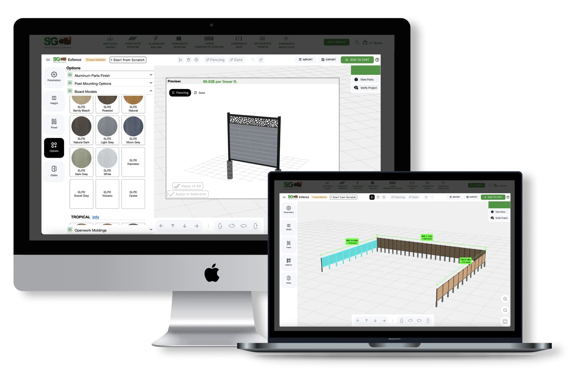 SGC proudly presents our advanced Fence Designer Software, empowering you to create your dream outdoor space effortlessly. With unparalleled customization options for composite fencing, decorative aluminum panels, gates, and more, bring your vision to life with precision.