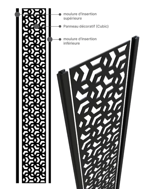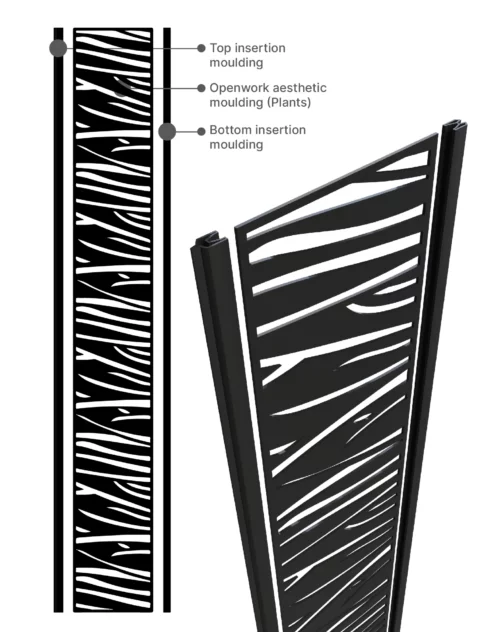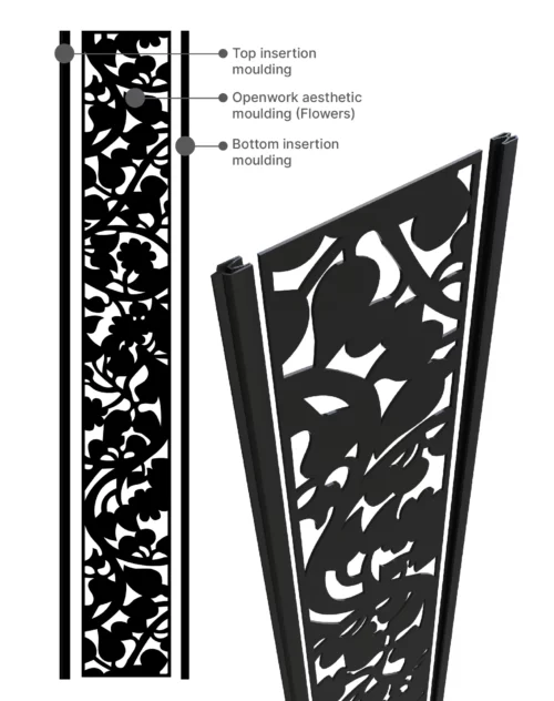 If you want to give your composite fencing panels a more finished appearance, our decorative trim molding and lattice panels are the way to go. These panels can take the place of two fence boards, transforming your backyard with an eye-catching new look while maintaining your privacy. The Horizontal Aluminum Decorative Screens devide the panel into two sections, the lower of which is comprised of contemporary horizontal infill boards for increased privacy, and the upper of which is comprised of decorative screen panels in a wide range of designs. Both boards simply slide into position and are held in place by heavy-duty structural post channels. Our Decorative Trim Molding and Lattice Panels come in a variety of styles and are 80 inches in length, 12 inches in breadth, and 0.25 inches in thickness.