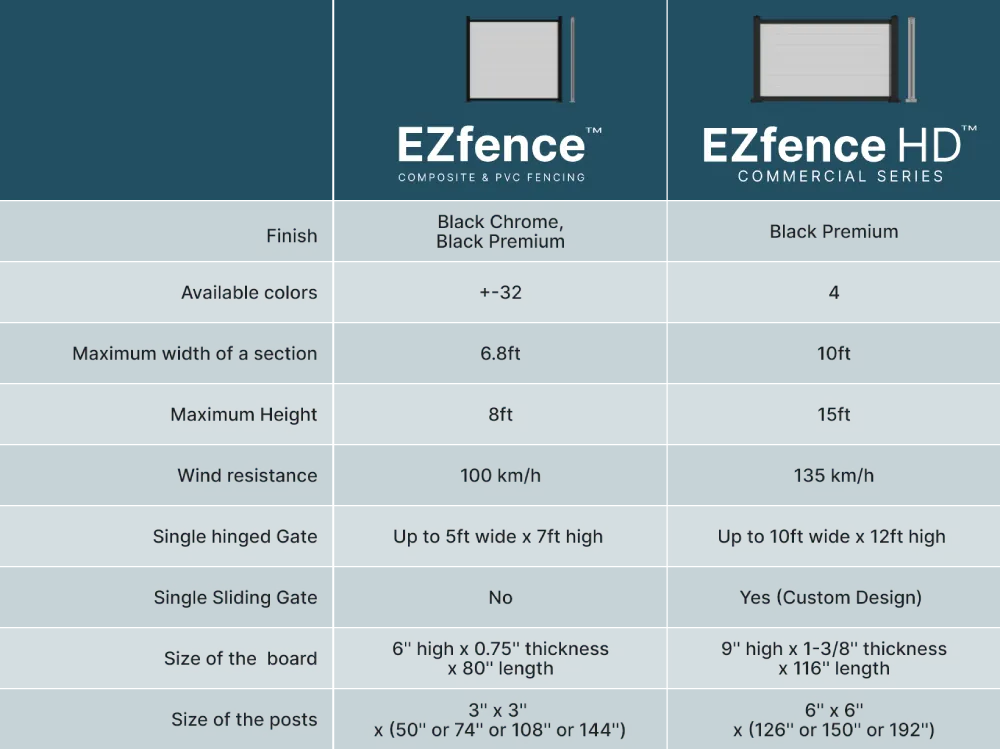 Regular EZfence requires a maximum center to center distance of 4.5′ but causes a lot of waste so it is more economical to use 6.54′. but causes a lot of loss of board so it is more economical to use 6.54′.
