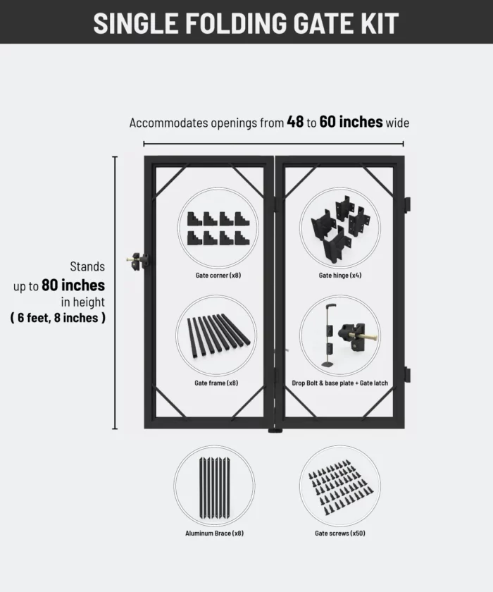 Single folding Gate Kit From 45 inch to 60inch and up to 6ft length